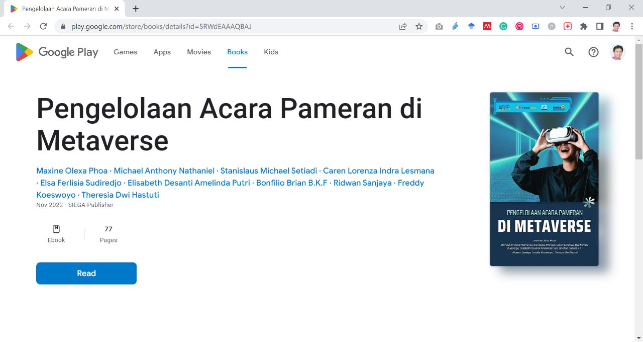 Pada buku “Pengelolaan Acara Pameran di Metaverse” ini, akan dijelaskan bagaimana menjadi Event Organiser yang dapat mengatur sebuah acara pameran di dunia Metaverse. Metaverse merupakan sebuah ruang realitas virtual di mana pengguna dapat berinteraksi dengan lingkungan yang komputer dan pengguna lain. Buku ini akan menjelaskan dari pembuatan website kegiatan pameran, formulir pendaftaran, memasang identitas peserta di ruang pamer, hingga pembuatan ruang masuk pameran.